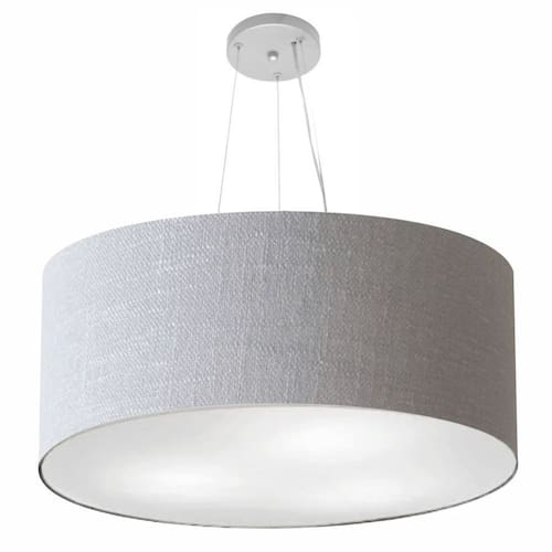 Lustre Pendente Cilíndrico Md-4074 Cúpula Tecido 60x30cm Rustico Cinza
