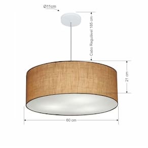 Lustre Pendente Cilíndrico Md-4079 Cúpula Tecido 60x21cm Palha