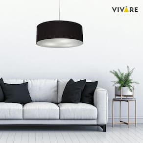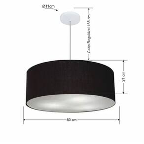 Lustre Pendente Cilíndrico Md-4079 Cúpula Tecido 60x21cm Preto