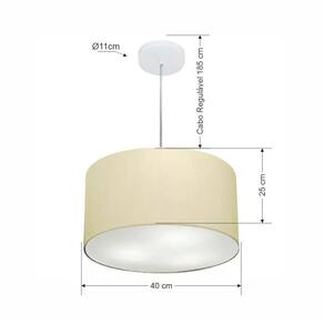 Lustre Pendente Cilíndrico Md-4099 Cúpula Tecido 40x25cm Algodão Crú