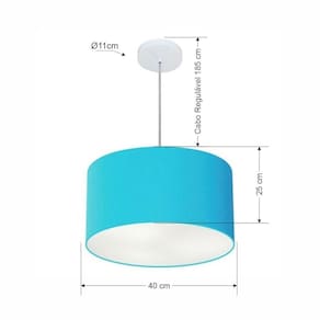 Pendente Moderno Indicado para decoração área interna, como mesas, sala de estar, sala de jantar, suíte, quartos, corredor, hall, mezanino, escadas, churrasqueira, lareira, área de circulação, lojas, comércios, restaurante, varanda, balcão.DimensãoCúpula em Tecido: 40x25cm
