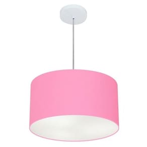 Lustre Pendente Cilíndrico Md-4099 Cúpula Tecido 40x25cm Rosa Bebê