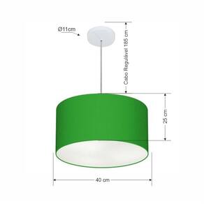 Lustre Pendente Cilíndrico Md-4099 Cúpula Tecido 40x25cm Verde Folha