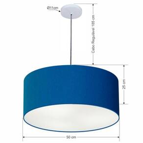 Lustre Pendente Cilíndrico Md-4100 Cúpula Tecido 50x25cm Azul Marinho