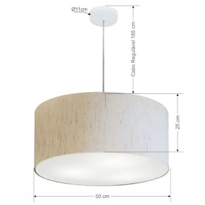 Lustre Pendente Cilíndrico Md-4100 Cúpula Tecido 50x25cm Linho Bege
