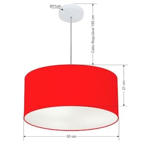 Lustre Pendente Cilíndrico Md-4100 Cúpula Tecido 50x25cm Vermelho