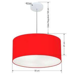 Pendente Moderno Indicado para decoração área interna, como mesas, sala de estar, sala de jantar, suíte, quartos, corredor, hall, mezanino, escadas, churrasqueira, lareira, área de circulação, lojas, comércios, restaurante, varanda, balcão.DimensãoCúpula em Tecido: 50x25cm