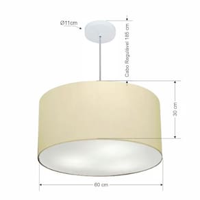 Lustre Pendente Cilíndrico Md-4101 Cúpula Tecido 60x30cm Algodão Crú