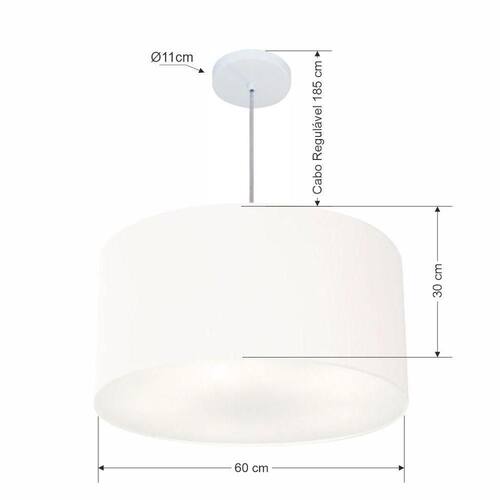 Pendente Moderno Indicado para decoração área interna, como mesas, sala de estar, sala de jantar, suíte, quartos, corredor, hall, mezanino, escadas, churrasqueira, lareira, área de circulação, lojas, comércios, restaurante, varanda, balcão.DimensãoCúpula em Tecido: 60x30cm