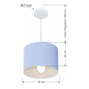 Pendente Moderno Indicado para decoração área interna, como mesas, sala de estar, sala de jantar, suíte, quartos, corredor, hall, mezanino, escadas, churrasqueira, lareira, área de circulação, lojas, comércios, restaurante, varanda, balcão.DimensãoCúpula em Tecido: 30x25cm