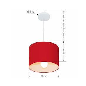 Lustre Pendente Cilíndrico Md-4113 Cúpula Tecido 30x25cm Bordo