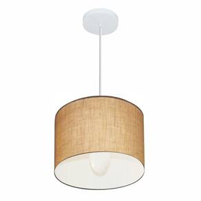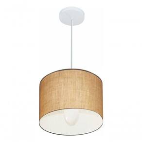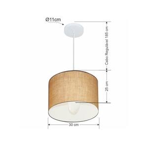Lustre Pendente Cilíndrico MD-4113 com Cúpula em Tecido 30X25CM Bivolt Palha Vivare Brasil Iluminação