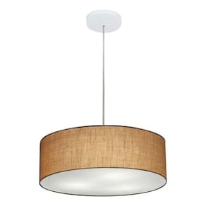Lustre Pendente Cilíndrico Md-4132 com Cúpula em Tecido 40x15CM Pequeno Bivolt Palha Vivare Brasil Iluminação