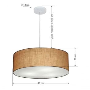O Lustre Pendente Cilíndrico Vivare Brasil Iluminação Md-4132 é ideal para iluminação decorativa em ambientes internos. Com cúpula em tecido no tamanho 40x15cm e formato cilíndrico, oferece iluminação agradável e visual moderno. O fio e cabo ajustável de 185cm e a canopla em alumínio facilitam a instalação em diferentes tipos de forro. Bivolt (110V/220V) e com soquete E27 para até 3 lâmpadas, adapta-se a diversas necessidades de uso em salas, quartos, corredores e áreas de circulação. A marca oferece garantia de 12 meses e o produto já vai montado, acompanhado de manual de instalação.
