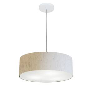 Lustre Pendente Cilíndrico Md-4132 Cúpula Tecido 40x15cm Linho Bege