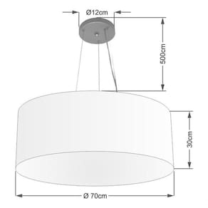 Fio ajustável 500cm facilita regulagem da altura conforme o ambiente.