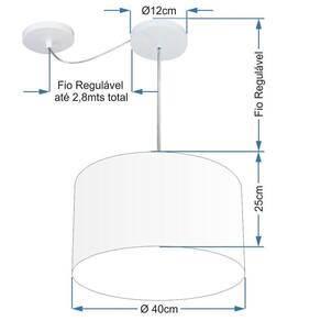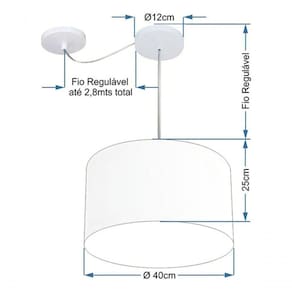 Fio ajustável 300cm permite regular a altura conforme o ambiente.