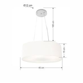 Lustre Pendente Cilíndrico Md-4184 Cúpula Tecido 45x15cm Branco