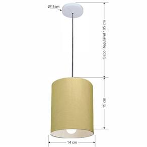 Lustre Pendente Cilíndrico Md-4200 Cúpula Tecido 14x15cm Algodão Crú