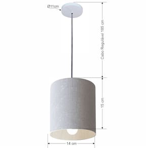 Lustre Pendente Cilíndrico Md-4200 Cúpula Tecido 14x15cm Rustico Cinza