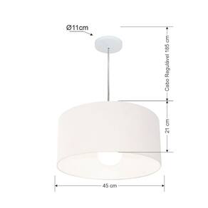 Lustre Pendente Cilíndrico Md-4203 Cúpula Tecido 45x21cm Branco