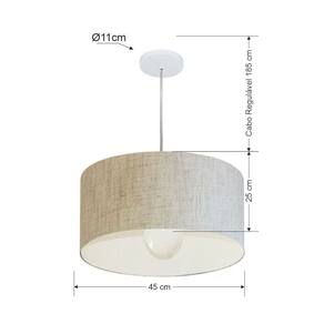 Lustre Pendente Cilíndrico Md-4204 Cúpula Tecido 45x25cm Rustico Bege