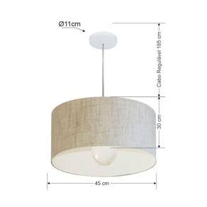 Lustre Pendente Cilíndrico Md-4205 com Cúpula em Tecido 45x30CM Bivolt Rústico Bege Vivare Brasil Iluminação