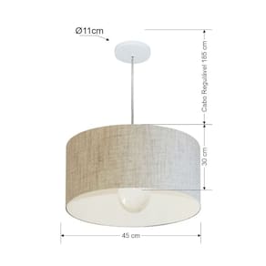Lustre Pendente Cilíndrico Md-4205 Cúpula Tecido 45x30cm Rustico Bege
