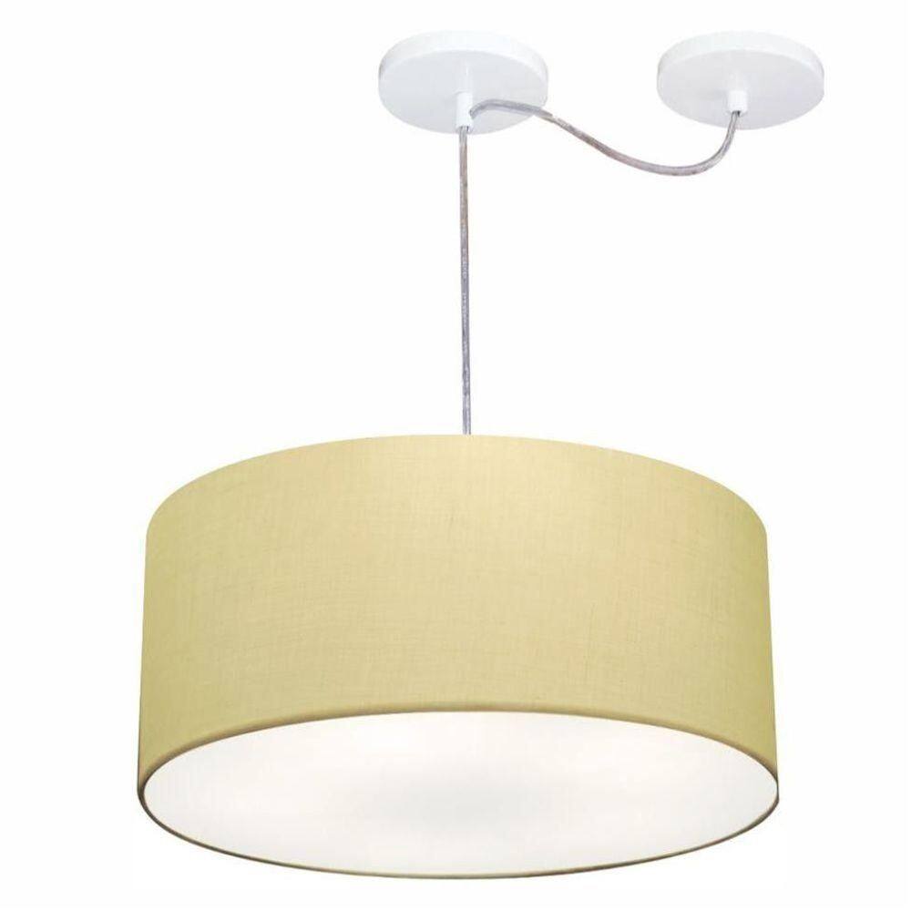 lustre pendente cilindrico md 4207 cupula tecido 55x25cm rustico bege vivare iluminacao