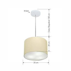 Lustre Pendente Cilíndrico Md-4211 Cúpula Tecido 35x25cm Algodão Crú