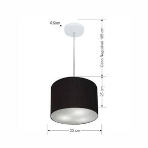Lustre Pendente Cilíndrico Md-4211 Cúpula Tecido 35x25cm Preto
