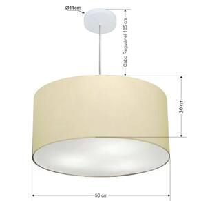 Lustre Pendente Cilíndrico Md-4213 Cúpula Tecido 50x30cm Algodão Crú