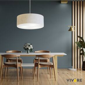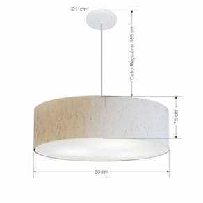 Lustre Pendente Cilíndrico Md-4221 Cúpula Tecido 60x15cm Linho Bege