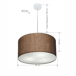 Lustre Pendente Cilíndrico Md-4244 Cúpula Tecido 40x25cm Café