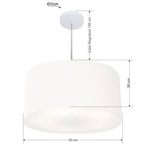 Lustre Pendente Cilíndrico Md-4245 para Teto com Cúpula em Tecido 50x30cm Bivolt Branco Vivare Brasil Iluminação