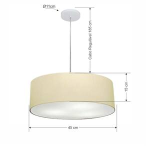 Lustre Pendente Cilíndrico Md-4254 Cúpula Tecido 45x15cm Algodão Crú