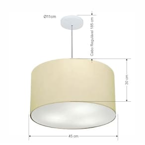 Lustre Pendente Cilíndrico Md-4257 Cúpula Tecido 45x30cm Algodão Crú