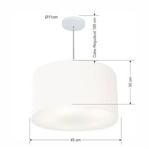 Lustre Pendente Cilíndrico Md-4257 Cúpula Tecido 45x30cm Branco