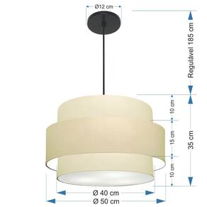 Lustre Pendente Cilíndrico Md-4384 Cúpula em Tecido Bege Tam 50cm