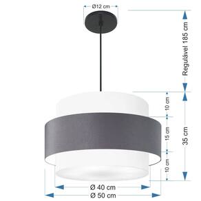 Lustre Pendente Cilíndrico Md-4384 Cúpula em Tecido Branca Cinza Tam 50cm