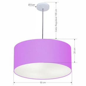 Lustre Pendente Cilíndrico Vivare Free Lux Pe-4386BR Cúpula em Tecido - 50X25cm - Cor: Lilás | Cor da Canopla: Canopla branca e fio cristal