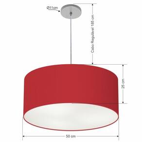 Lustre Pendente Cilíndrico Vivare Free Lux Pe-4386CZ Cúpula em Tecido - 50X25cm