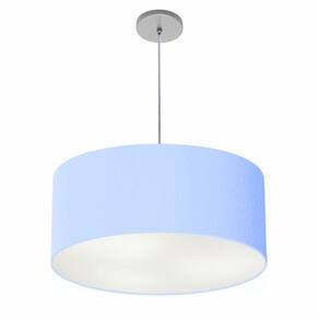 Lustre Pendente Cilíndrico Vivare Free Lux Pe-4386CZ Cúpula em Tecido - 50X25cm - Cor: Azul-bebê | Cor da Canopla: Canopla cinza e fio cristal