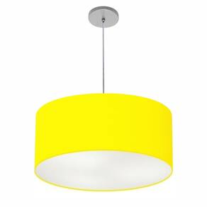 Lustre Pendente Cilíndrico Vivare Free Lux Pe-4386CZ Cúpula em Tecido - 50X25cm - Cor: Amarelo-único | Cor da Canopla: Canopla cinza e fio cristal