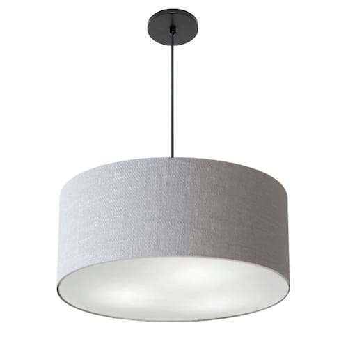 Lustre Pendente Cilíndrico Vivare Free Lux Pe-4386PR Cúpula em Tecido - 50X25cm - Cor: Rustico-cinza | Cor da Canopla: Canopla preta e fio preto