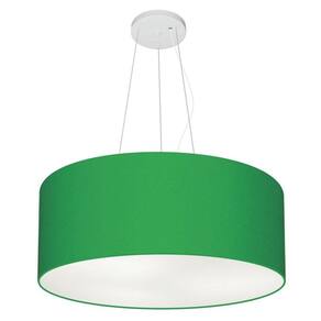 Lustre Pendente Cilíndrico Vivare Md-4047 Cúpula em Tecido 50x21cm - Bivolt - Cor: Verde-folha | Voltagem: 127/220V