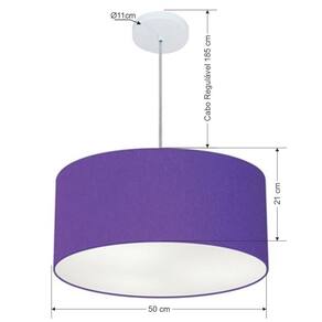 Lustre Pendente Cilíndrico Vivare Md-4049 Cúpula em Tecido 50x21cm - Bivolt - Cor: Roxo | Voltagem: 127/220V