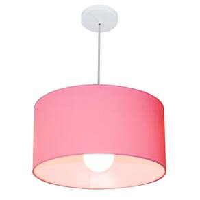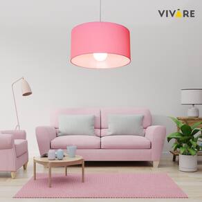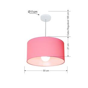 Lustre Pendente Cilíndrico Vivare Md-4052 Cúpula em Tecido 50x21cm - Bivolt - Cor: Rosa-bebê | Voltagem: 127/220V