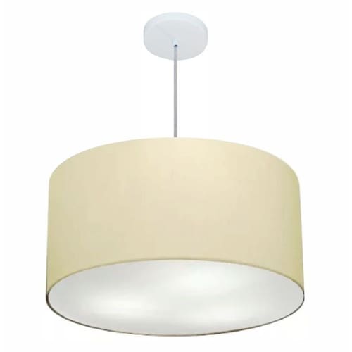 Lustre Pendente Cilíndrico Vivare Md-4080 Cúpula em Tecido 60x30cm - Bivolt - Cor: Algodão-Crú | Voltagem: 127/220V