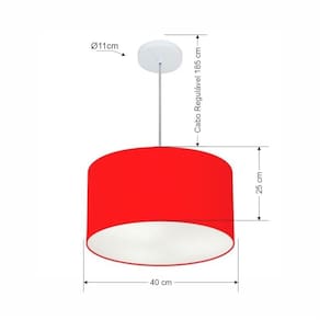 Lustre Pendente Cilíndrico Vivare Md-4099 Cúpula em Tecido 40x25cm - Bivolt - Cor: Vermelho | Voltagem: 127/220V